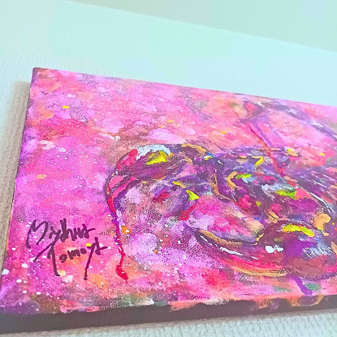 私の作品に出てくる動物たちは、ただの絵としてではなく、まるで自分の意思を持っているかのような存在感を感じてもらえるように心がけています。優しいタッチで、見る人にそっと語りかけるような表現を目指しています。